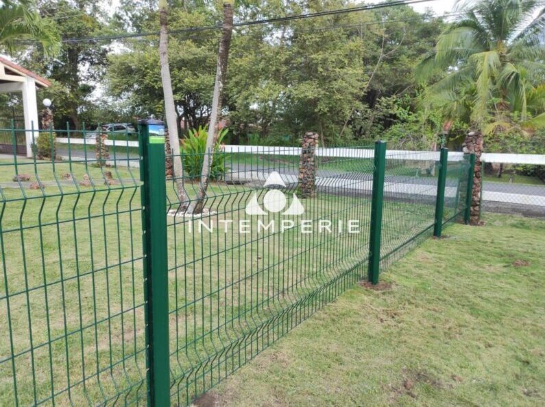 Nuestras cercas Electrosoldadas son de acero bajo carbono, vienen electropintadas y recubiertas de PVC termoendurecido, por lo tanto tienen una durabilidad de mucho más tiempo que las mallas de ciclón; además, el diseño de su poste y las nervaduras de su malla, las hacen más estables ante los fuertes vientos y mucho más resistentes al inclemente y cambiante clima que las cercas convencionales.